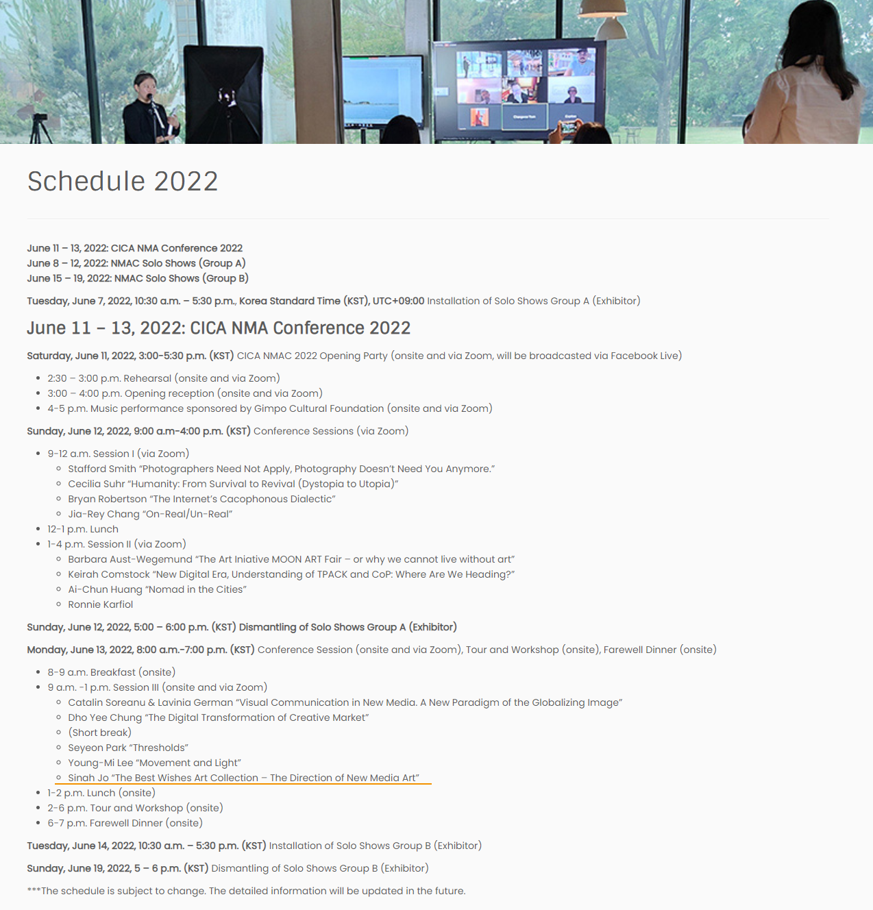 - 2022 CICA NMAC 뉴미디어 아트 국제 컨퍼런스 & 개인전 - CICA 미술관 (Jun. 15 ~ Jun. 19, 2022) CICA NMAC 2022 | CICA New Media Art International Conference and a solo exhibition