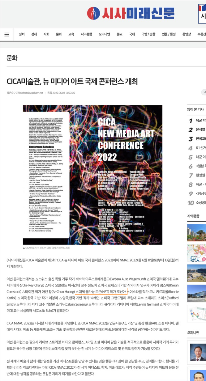 CICA NMAC 2022 뉴미디어 아트 국제 컨퍼런스 발표 및 개인전